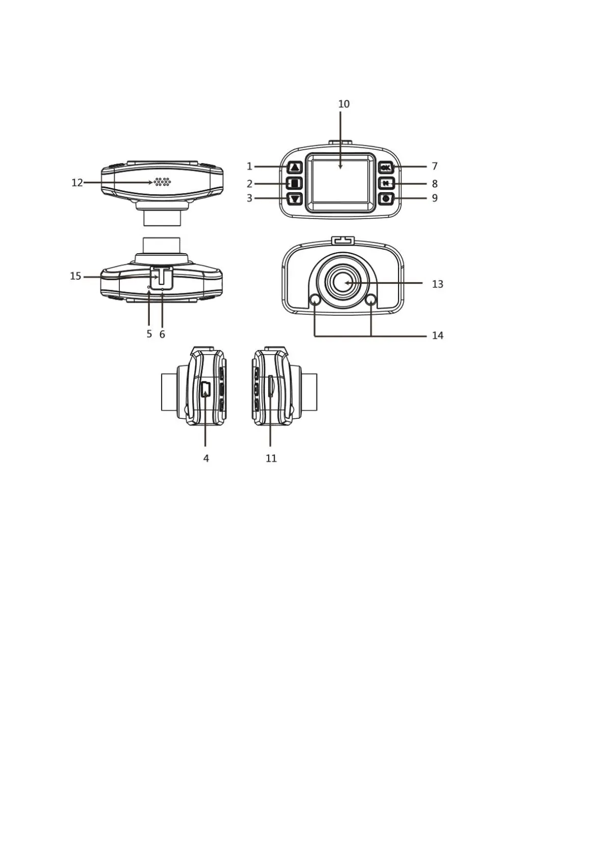 4)Interface USB 5)MIC 6)Réinitialiser trou