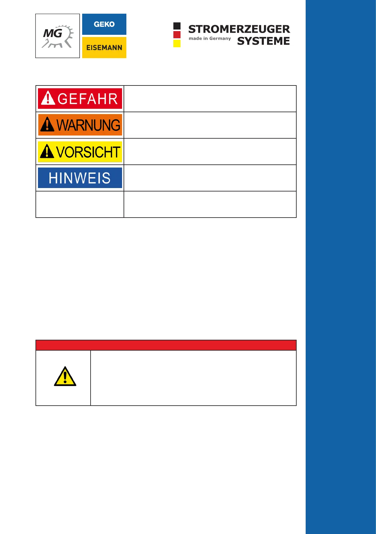 Das Signalwort kennzeichnet die Höhe des Risikos sowie die Schwere der möglichen Verletzungen.