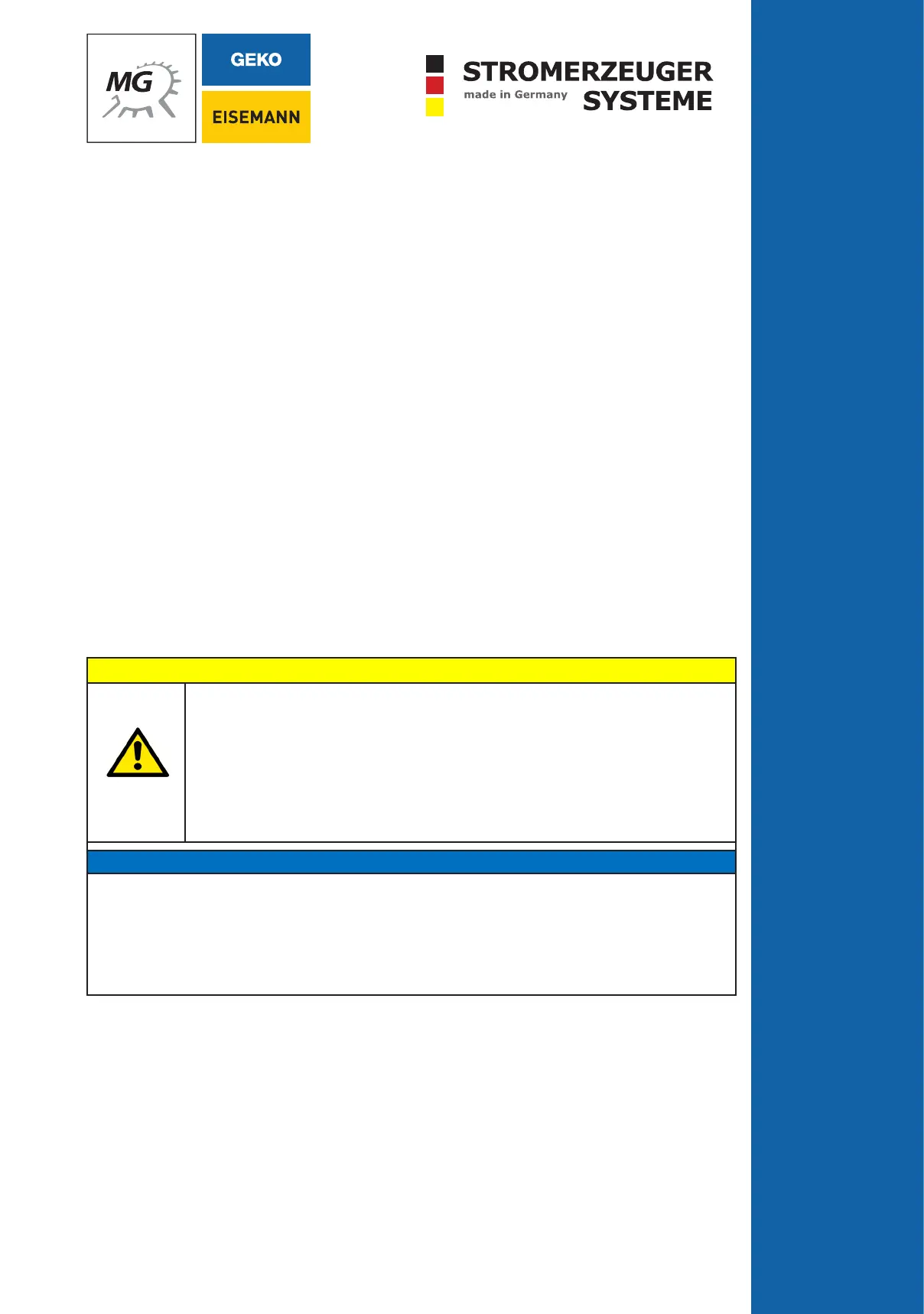 GEKO/EISEMANN power generators are manufactured in accordance with DIN VDE 0100/part 551 and