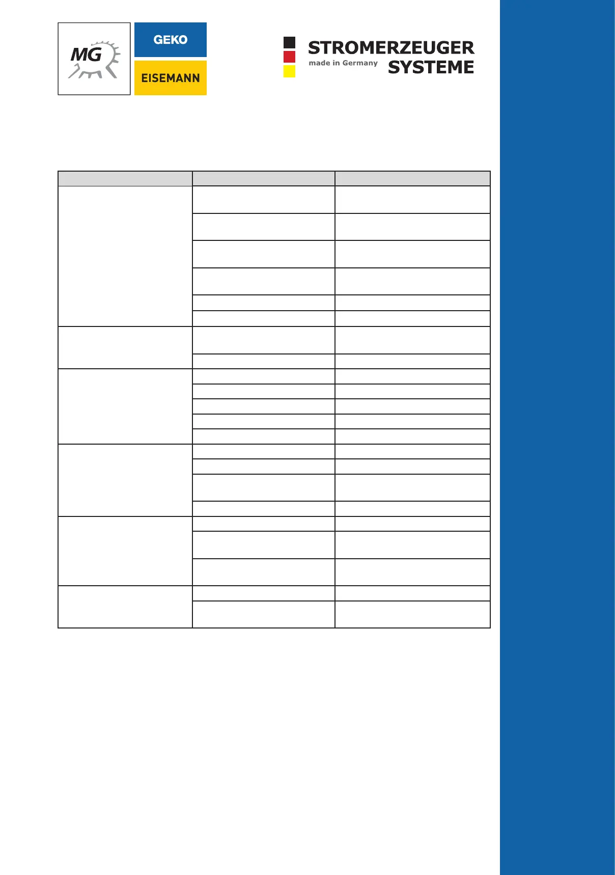 Regarding topics that are not included in this table, please consult your authorised workshop