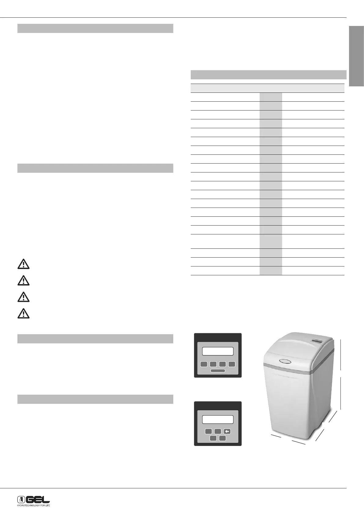 • L’addolcitore deve essere installato in un locale igienicamente idoneo,