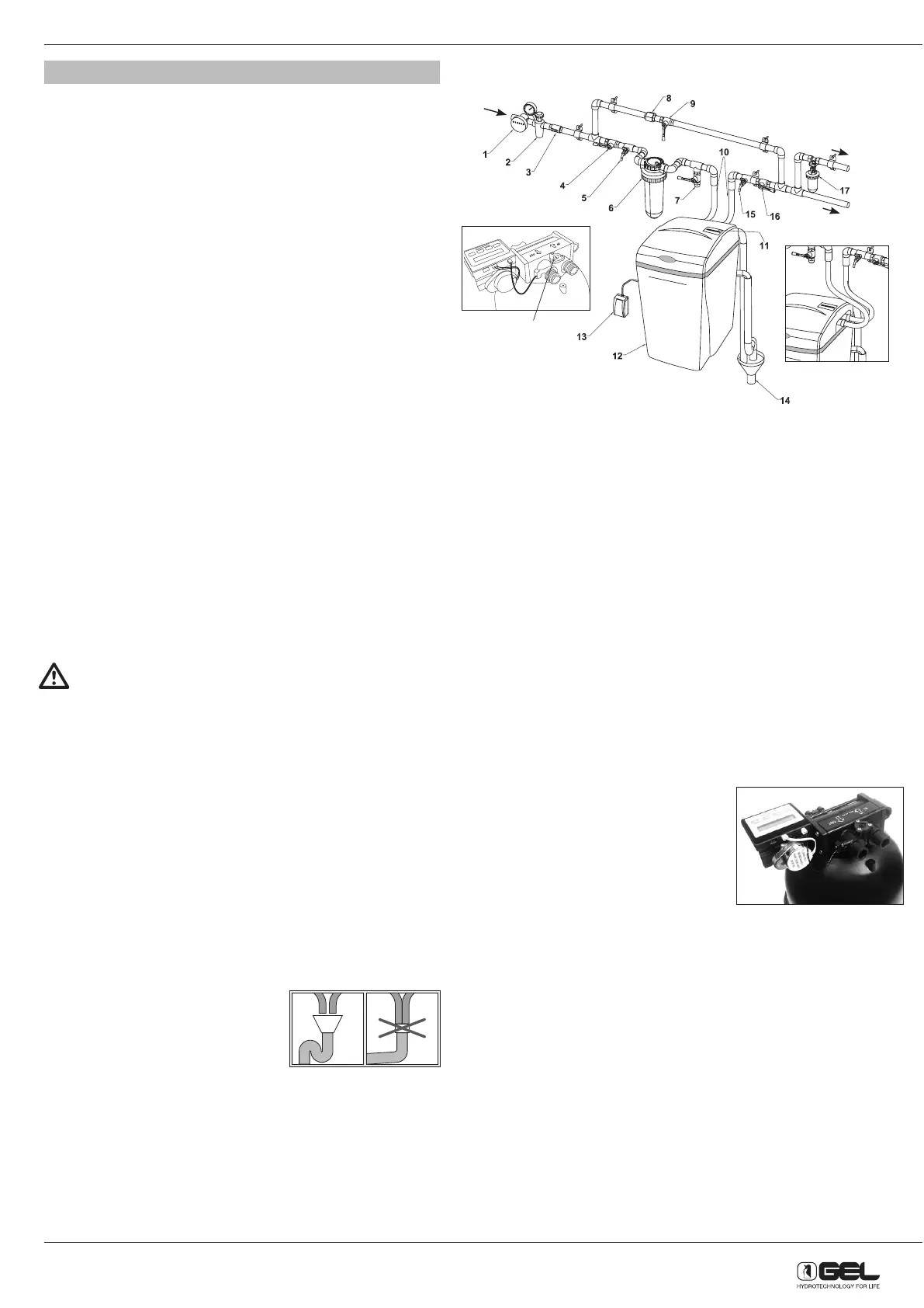 - L’installatore, in nessun caso dovrà far passare l’acqua nell’addolcitore.