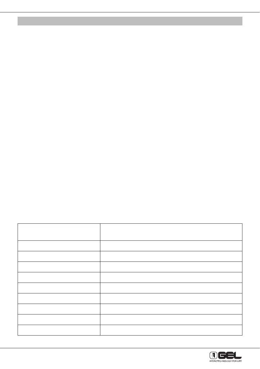 - Portata minima dell’acqua: vedere sottostante tabella