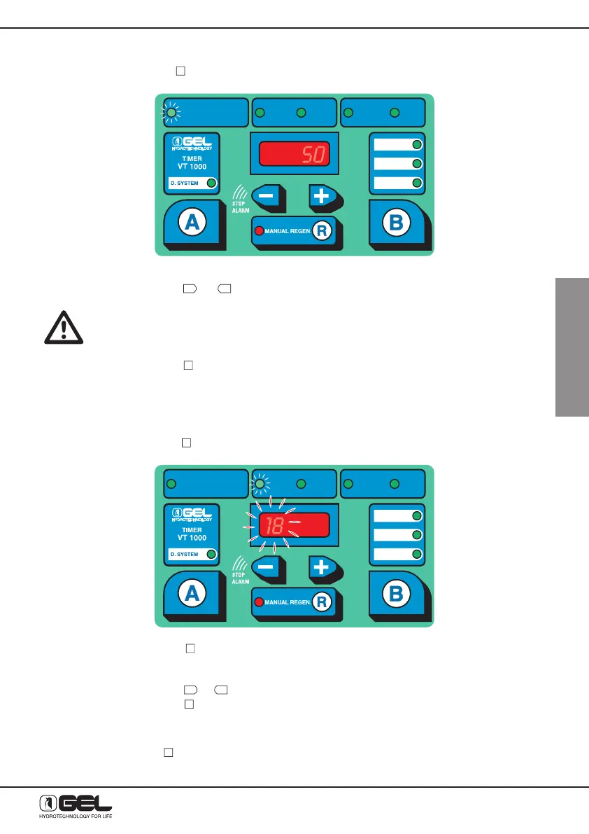 , les chiffres sur l’afficheur et le voyant lumineux « dureté de l’eau » clignoteront