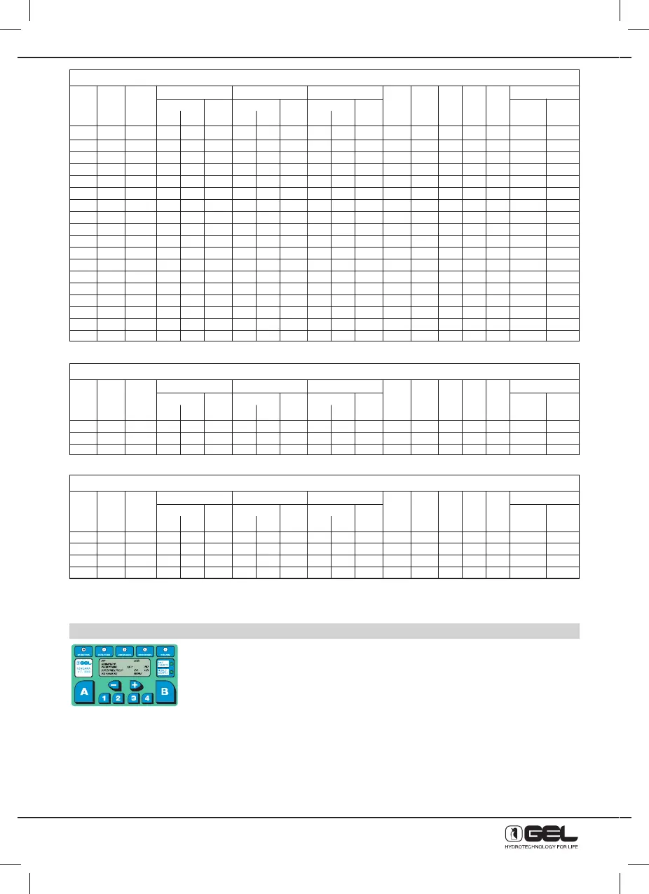 N.B.: pour tous les modèles : pression 2-6 bars, température eau 5°-30°. Absorption électrique : 12 VA. Les valeurs du débit t de la capacité cyclique sont relatives à une