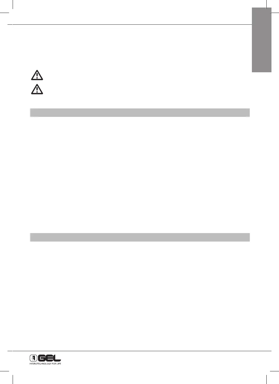 L’avviamento ed il collaudo dell’addolcitore deve essere eseguito dal personale autorizzato GEL, il quale
