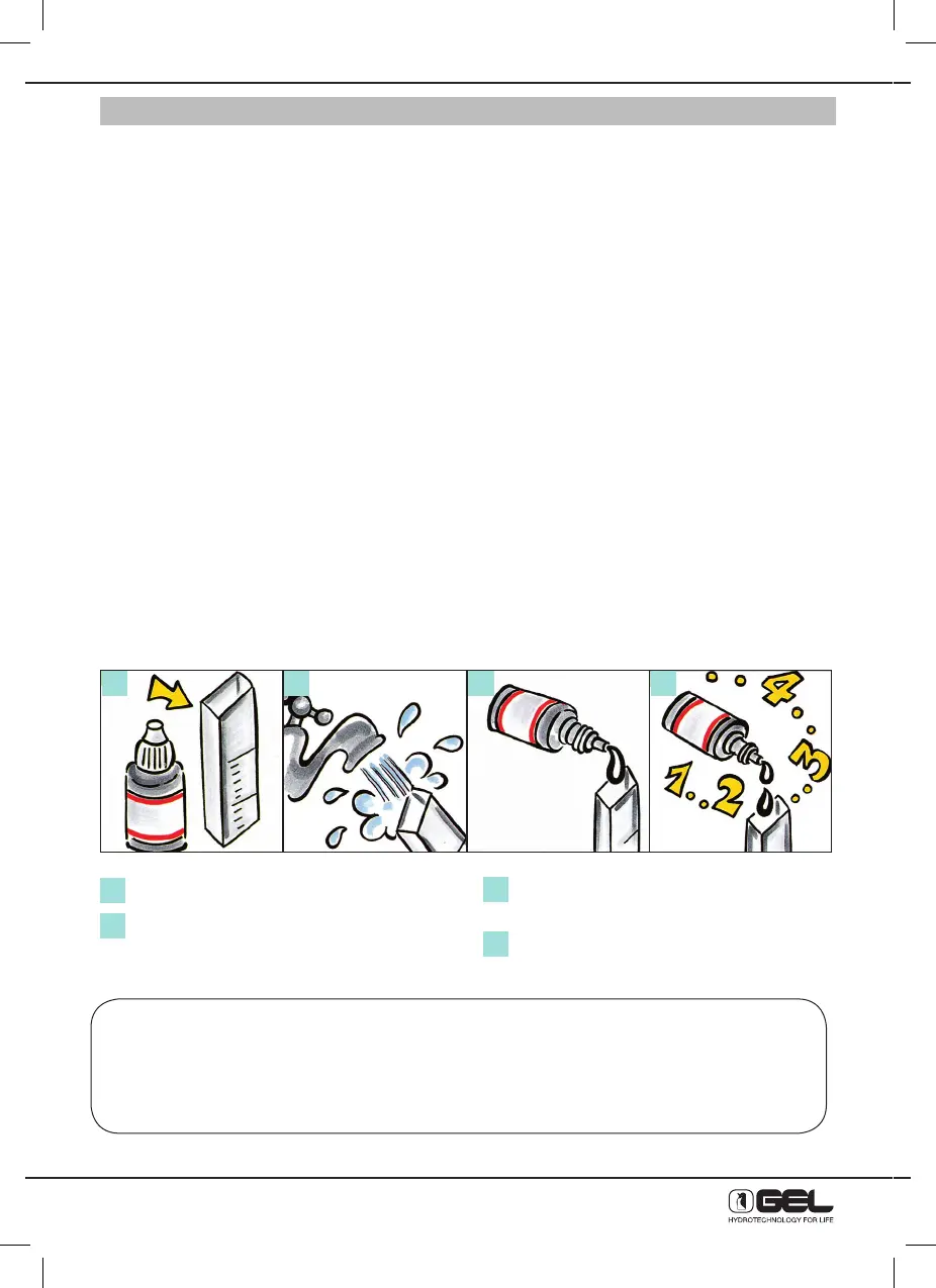 Example: 20 drops = 20° f hardness