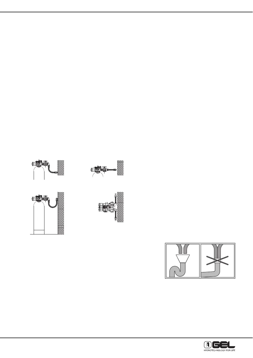 For in-out connections of the softener to the system use flexible hoses or vibration-damping joints.