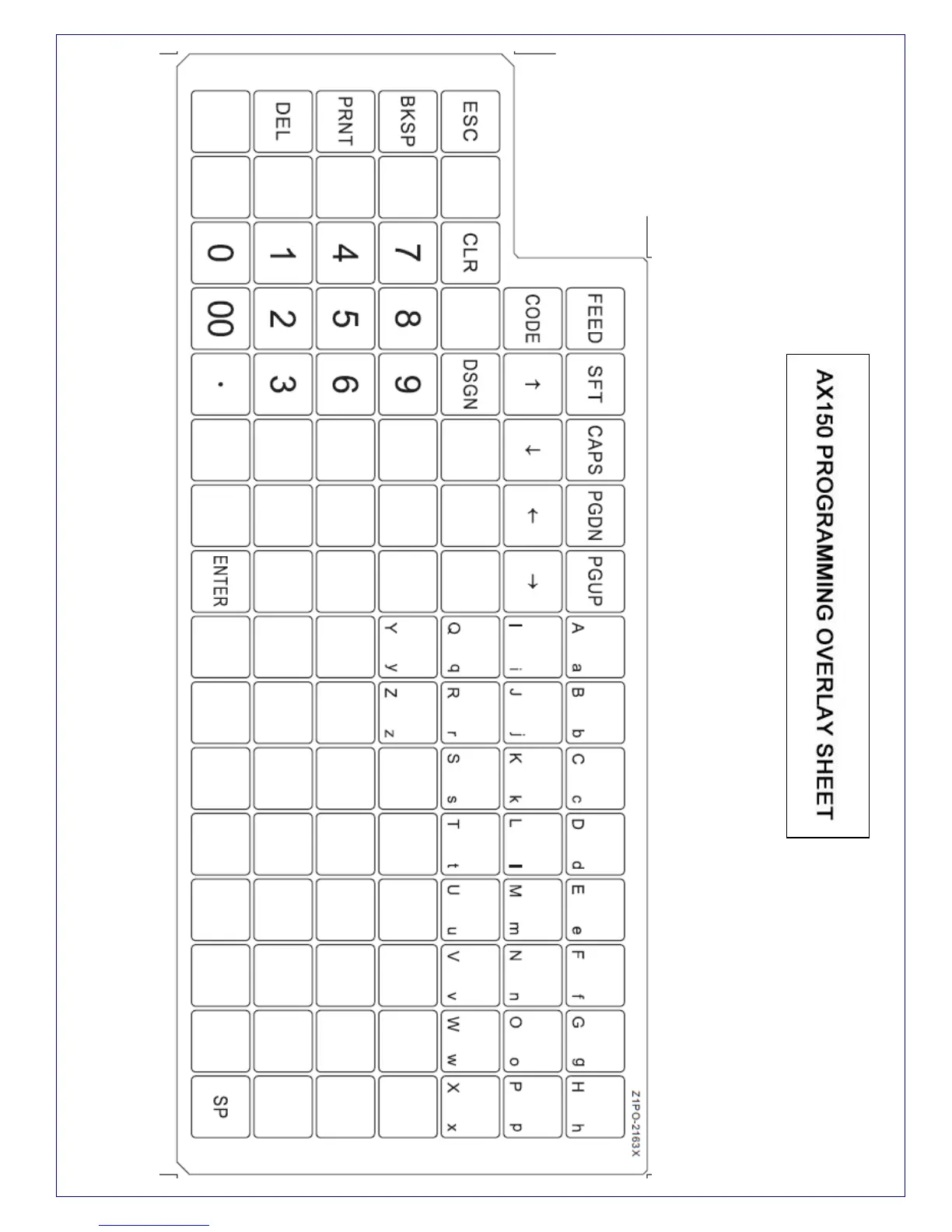 Geller AX-150 - AX150 PROGRAMMING OVERLAY SHEET