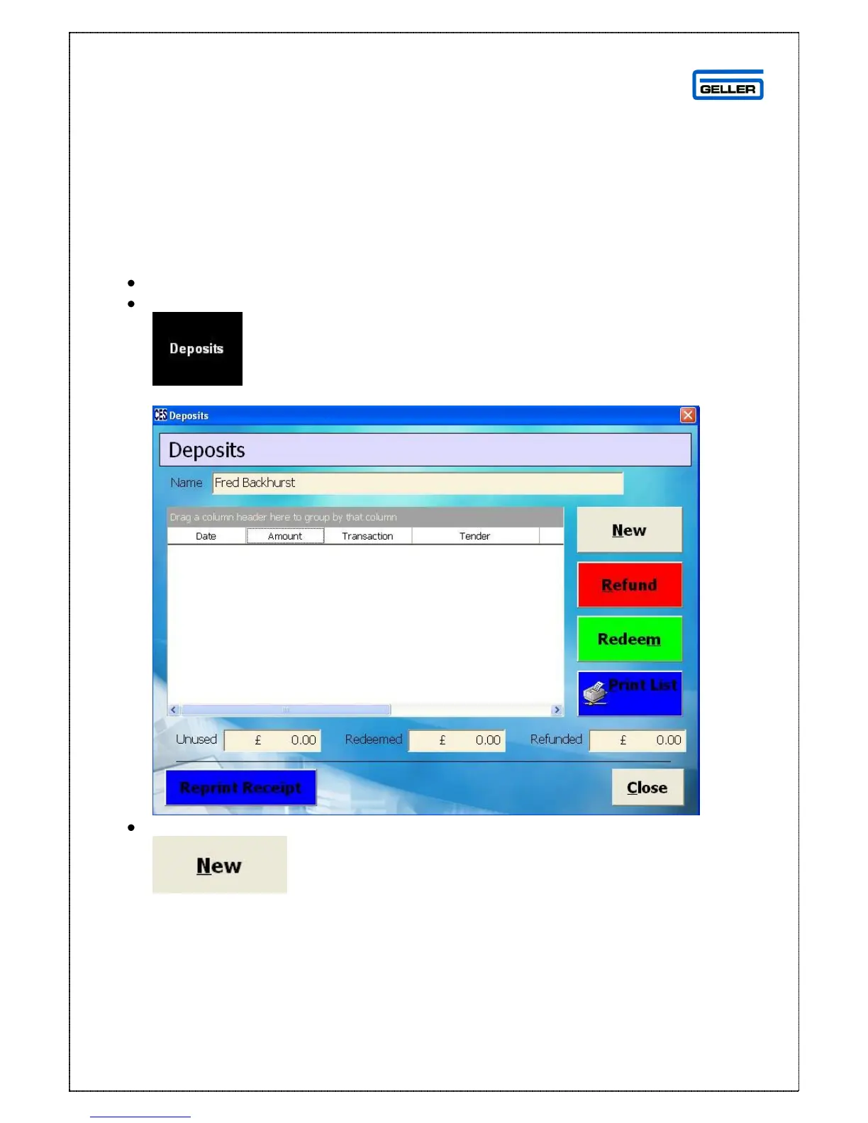 Geller Touch - Customer Deposit Management; Taking Customer Deposits