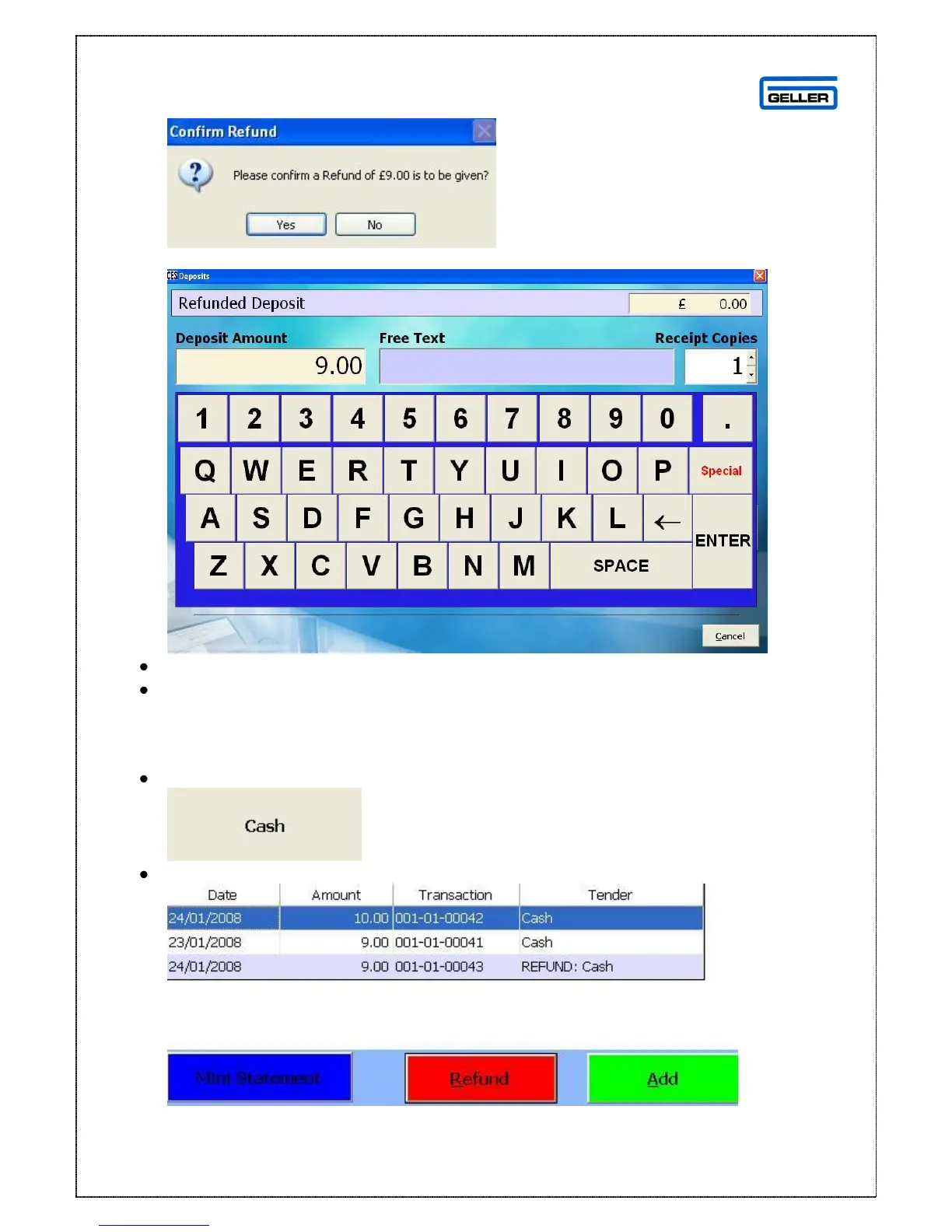 The refunded deposit screen is shown