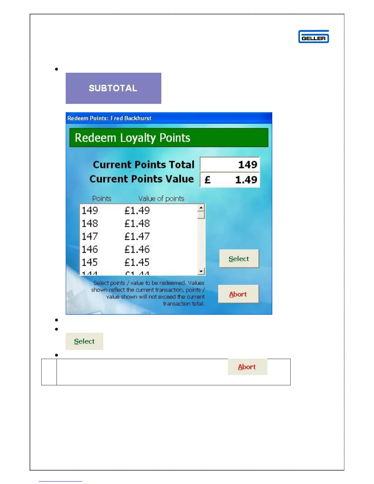 The Redeem Points screen will be displayed