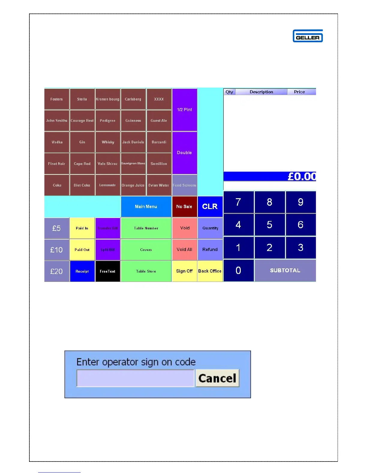 2. Manual Sign On – this is a box for the operator to enter their Sign On code