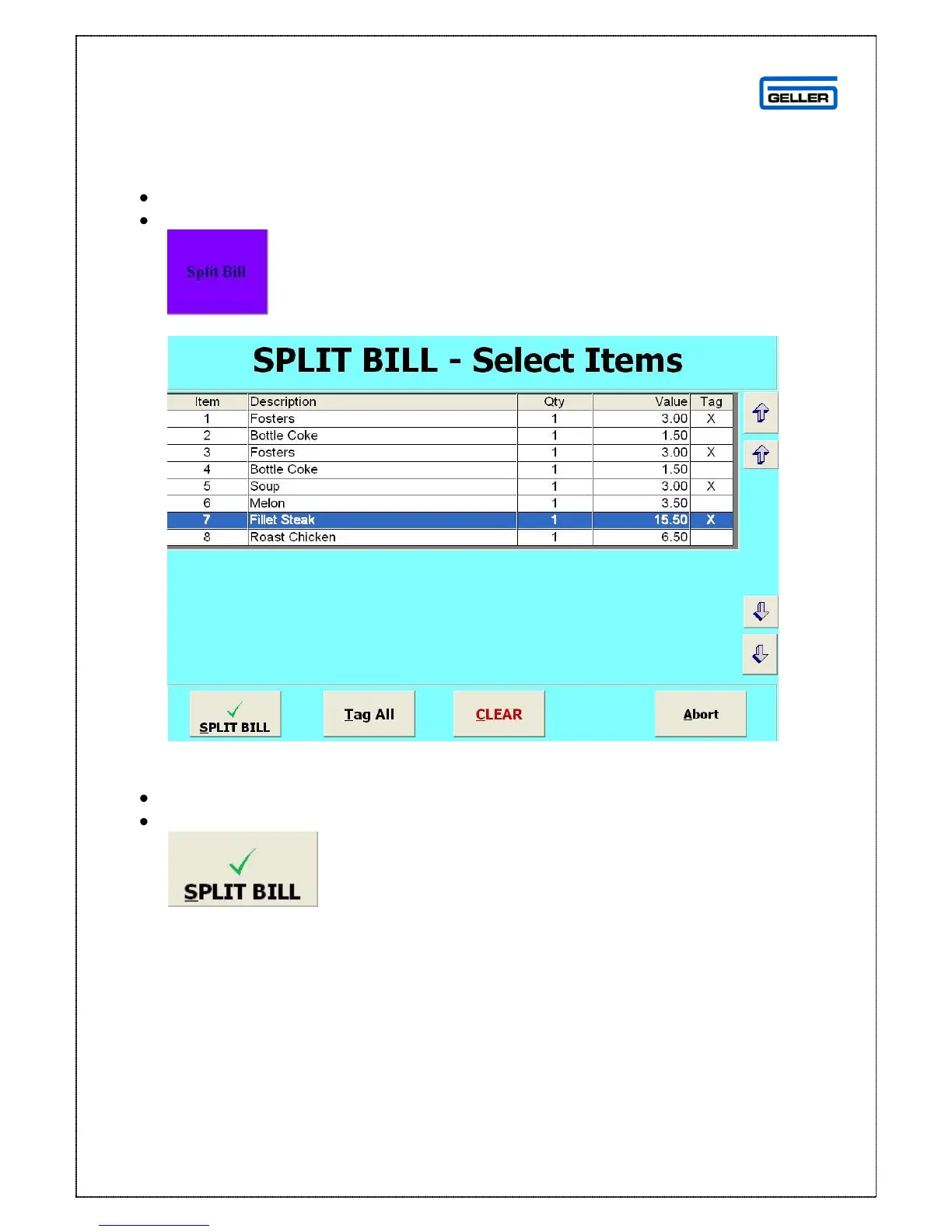 Splitting the bill enables a table/tab to be split up into a number of bills that can be