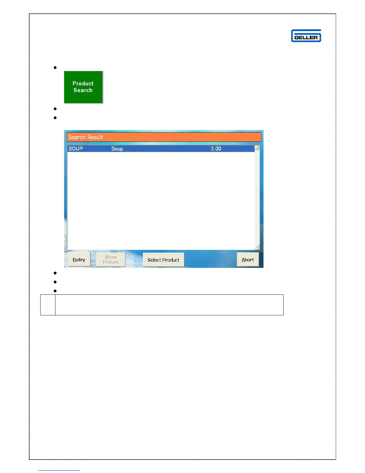 Abort will exit from the Product Search mode