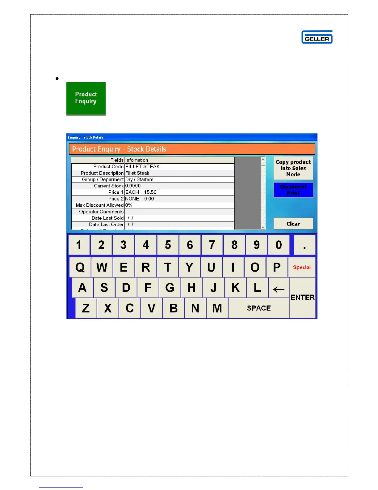 The Product Enquiry Stock Details Page will be shown
