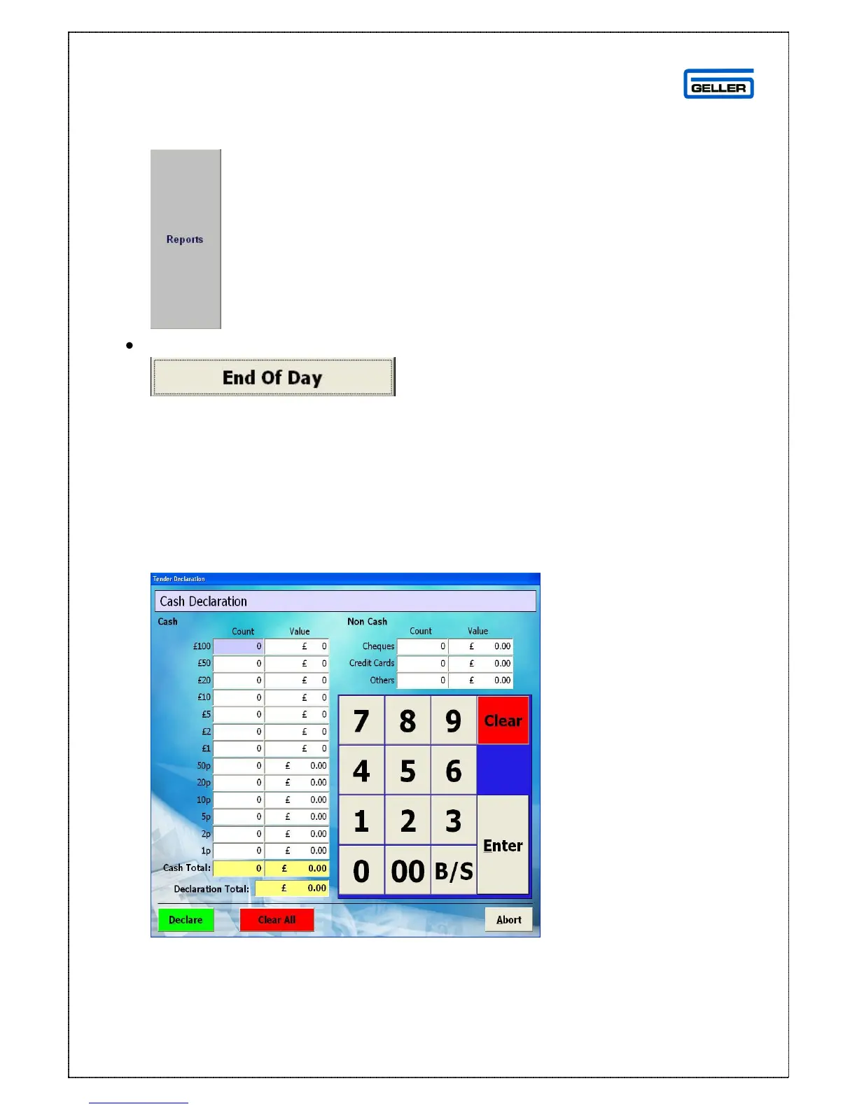 Geller Touch - End of Day Procedures; Cash Declaration Process