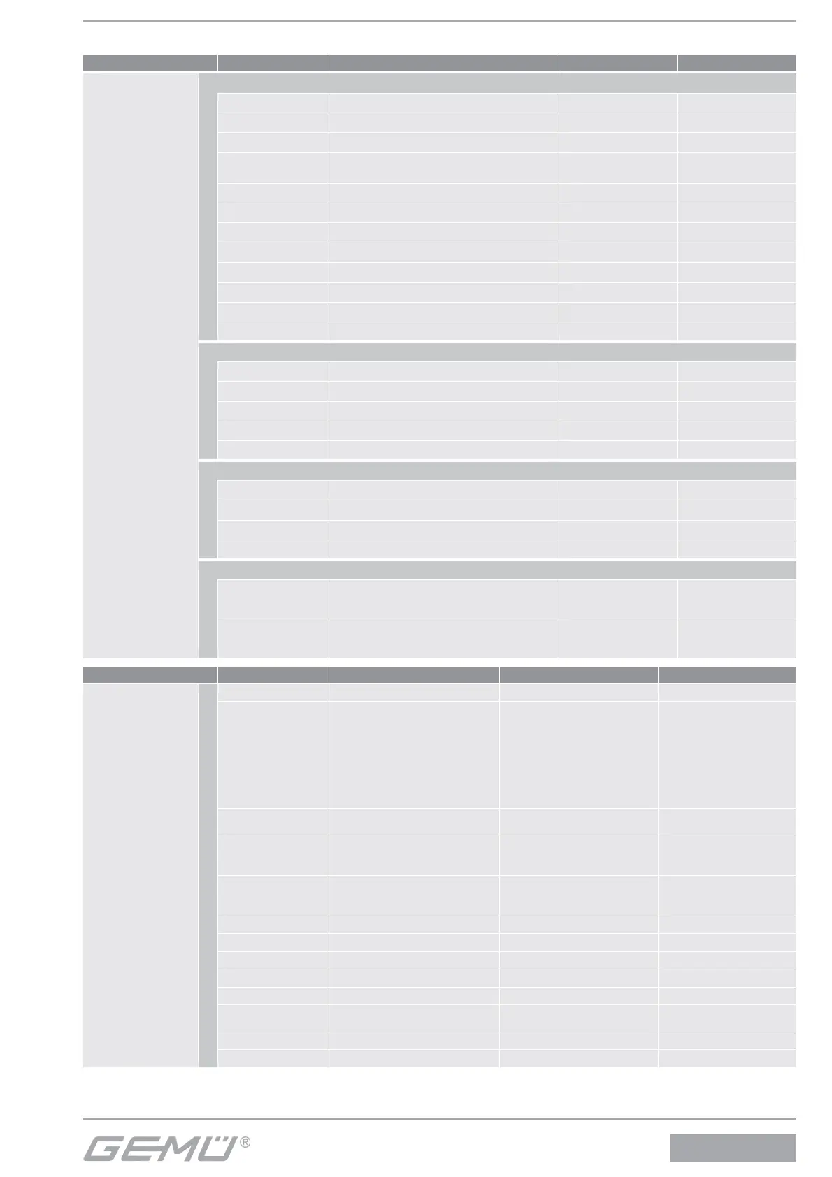 Configuration level Display Function Value range Factory setting