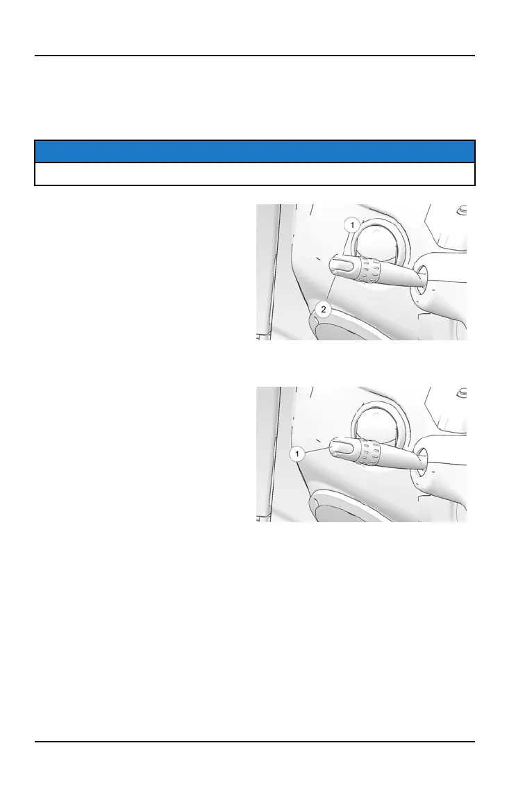 Pull the control lever toward the driver’s seat to toggle the headlights between