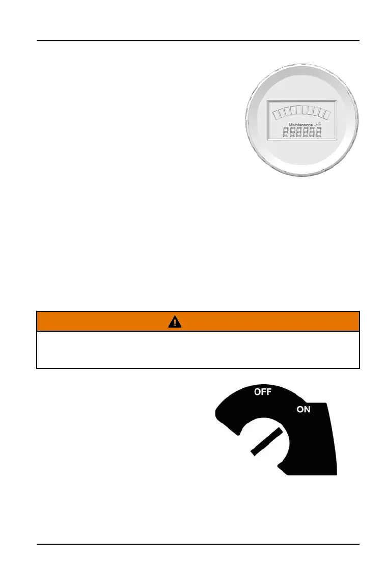 The hour meter records and displays the hours of actual “key on” time since