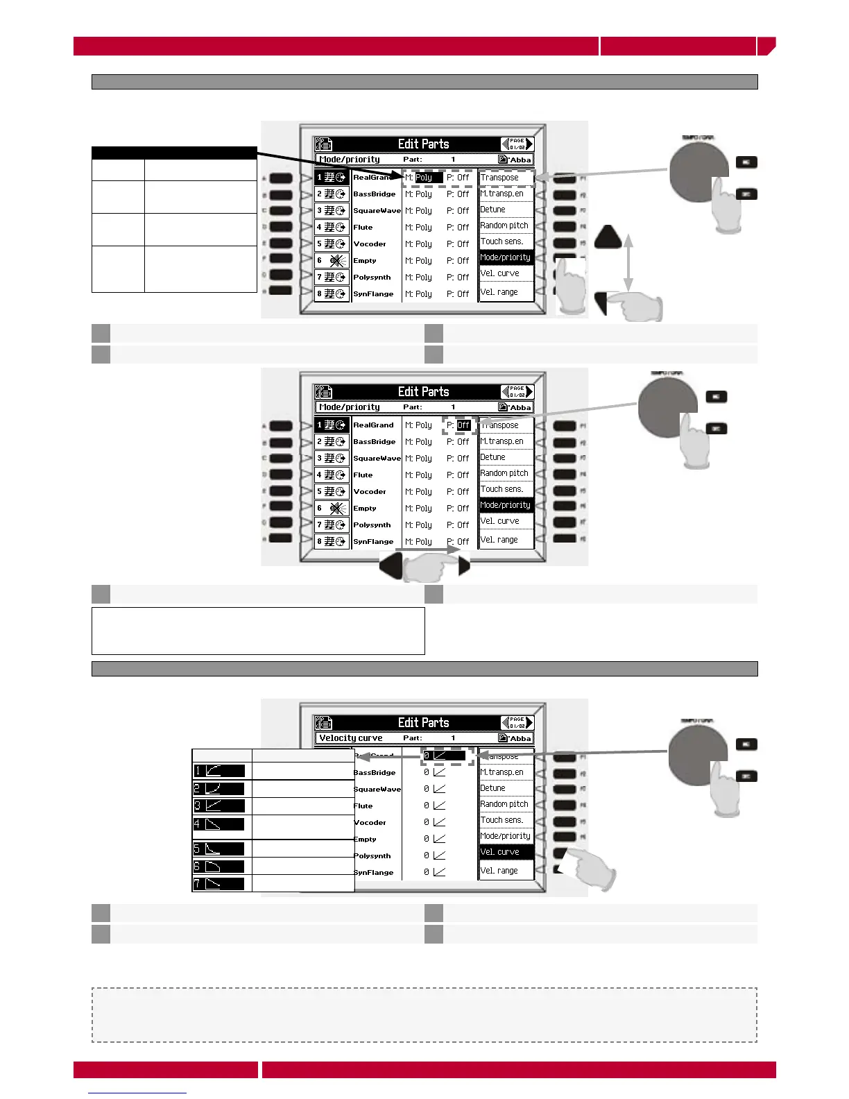 NOTE: The DETUNE, RANDOM PITCH, TOUCH SENS, MODE PRIORITY, VEL.CURVE, VEL RANGE parameters