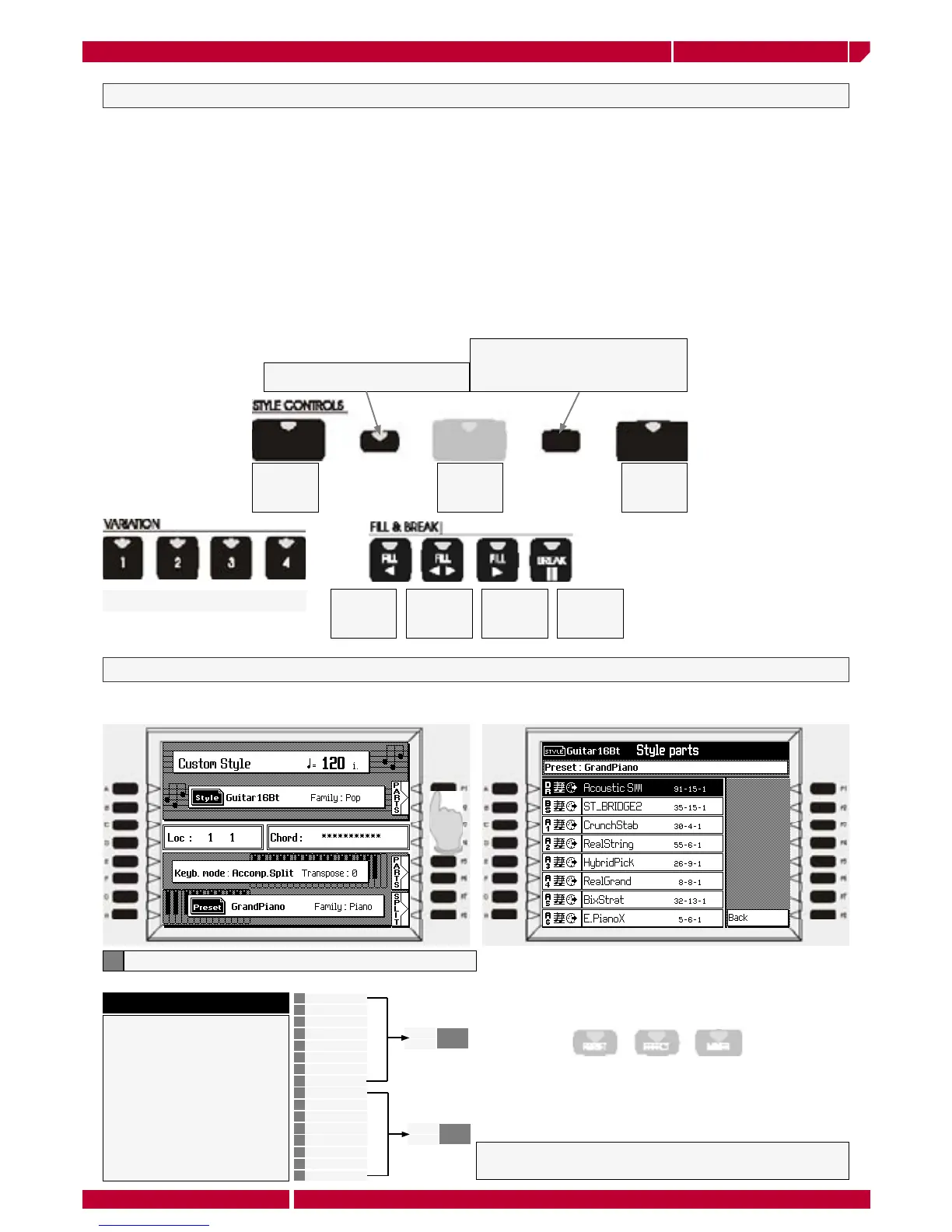 A style is composed by sounds assigned to PARTS. As the other parts we have already see (Song parts, Presets) event the style