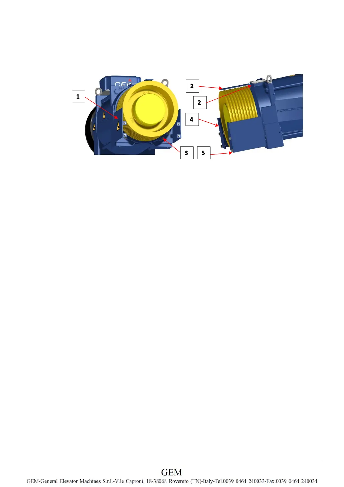 The optional rope retainer (2) is attached with two auto-locking hexagon head screws M6 x 14 – cl.8.8 (6).