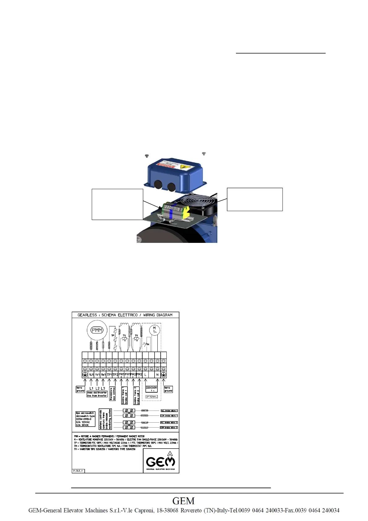 Two terminals are dedicated to ground protective connection: one is for the motor ground cable and