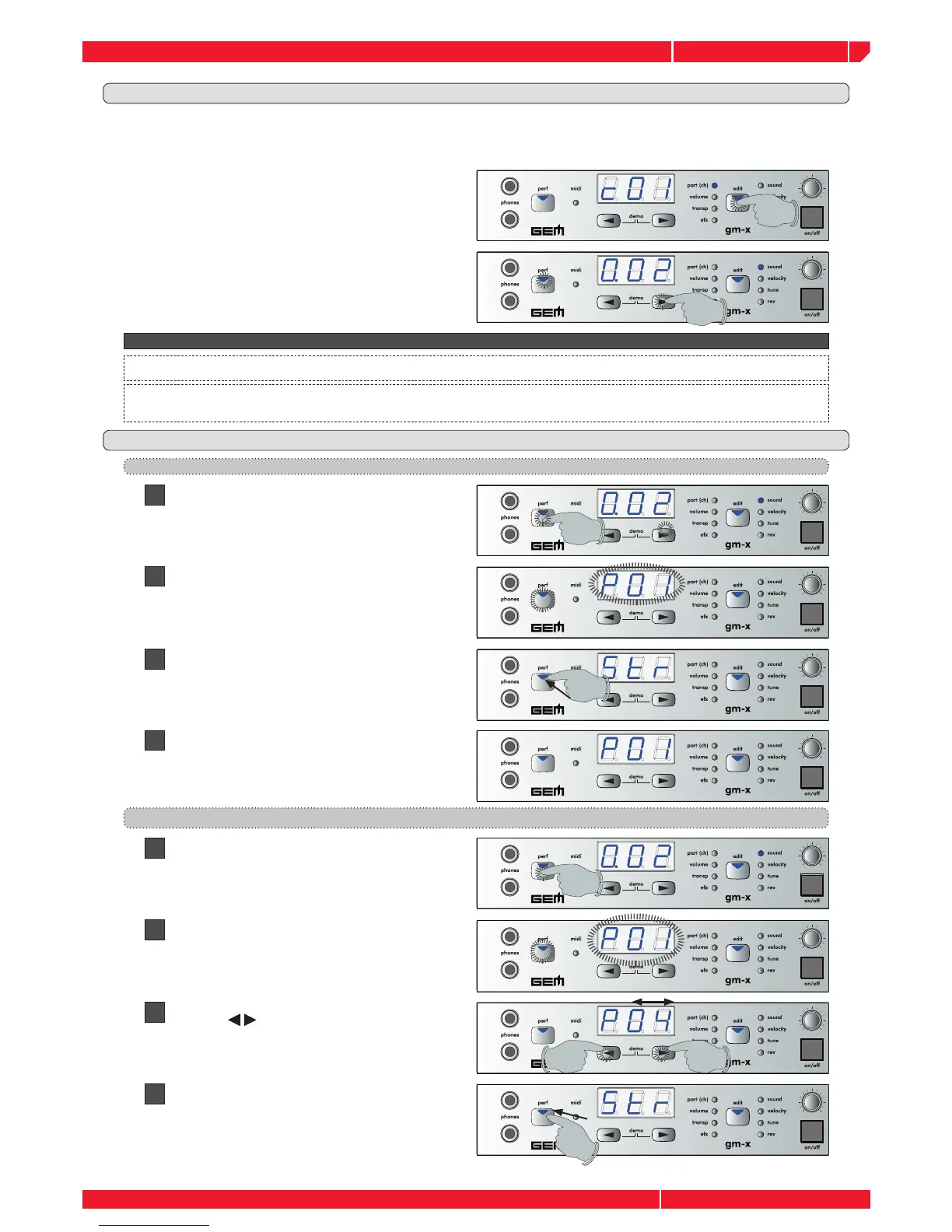 instrument, (this is due to the simplifi ed navigation system used in the module). The best way to fully edit the gm-x performance is to use the