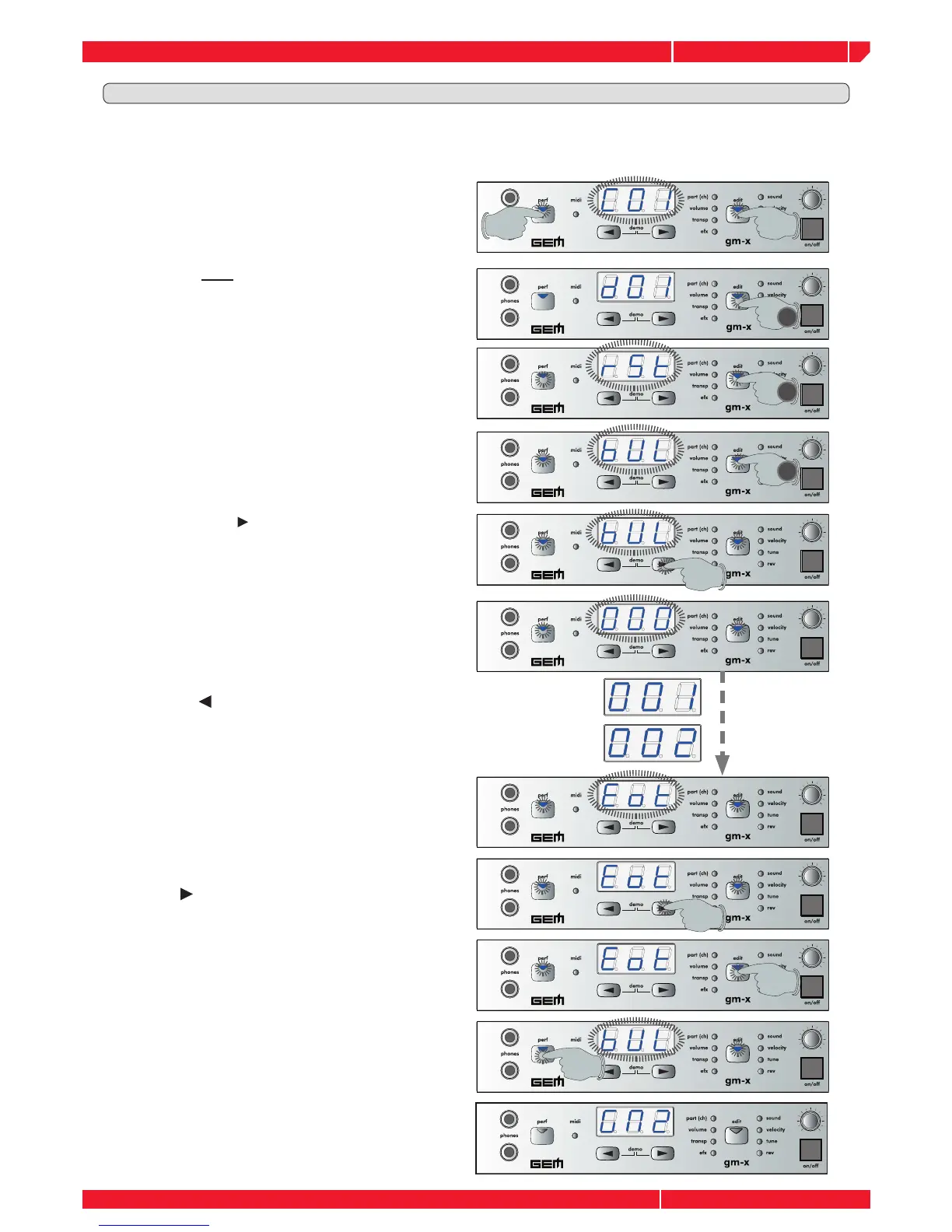 To transmit the data BULK to an external device the gm-x MIDI OUT has to be connected to the MIDI IN of the receiving