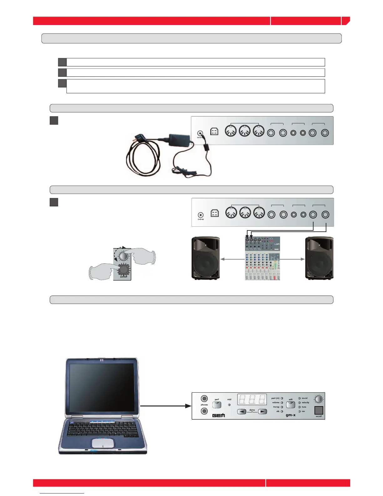 The Gm-x expander can be connected to a PC in two different ways: using the MIDI or the USB (Universal Serial