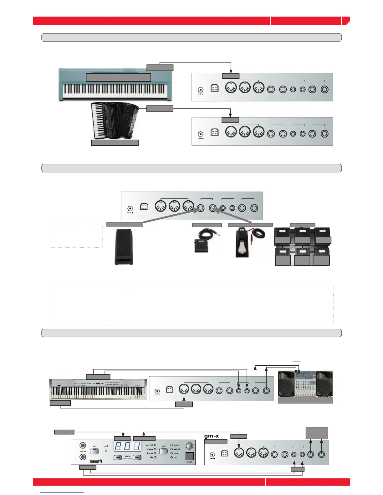 •The GM-X PEDAL Input 2 using a single switch pedal. This Pedal input it’s already set on the MIDI CC# 67 (SOFT)