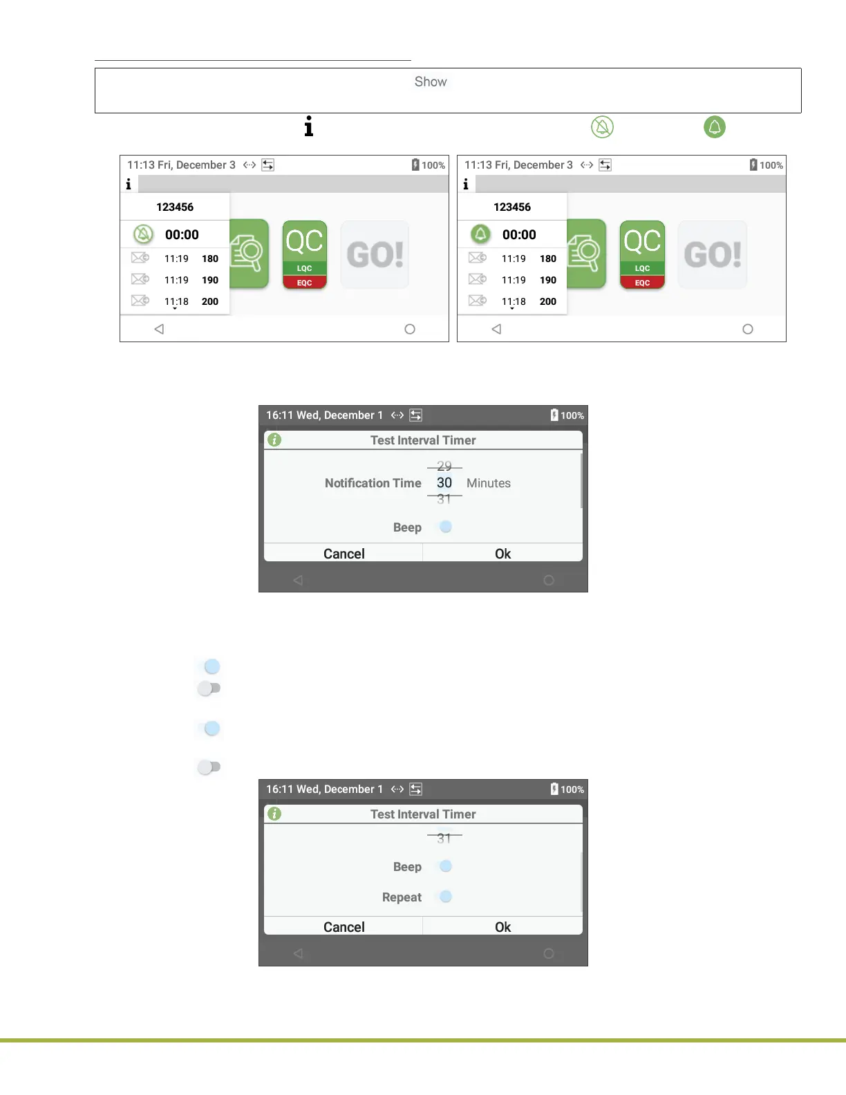 NOTE: The Interval Timer setting must be set to   (Show) to use the Test Interval Timer feature.