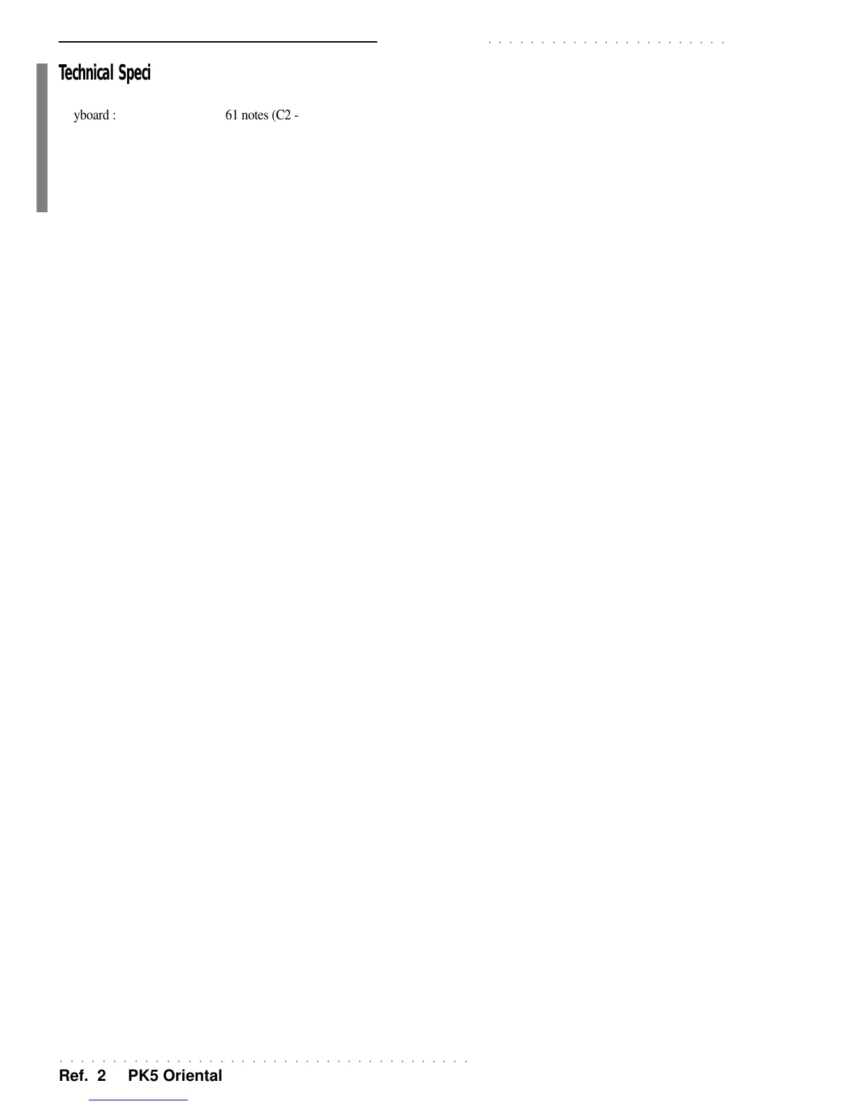 Technical Specifications PK5 Oriental
