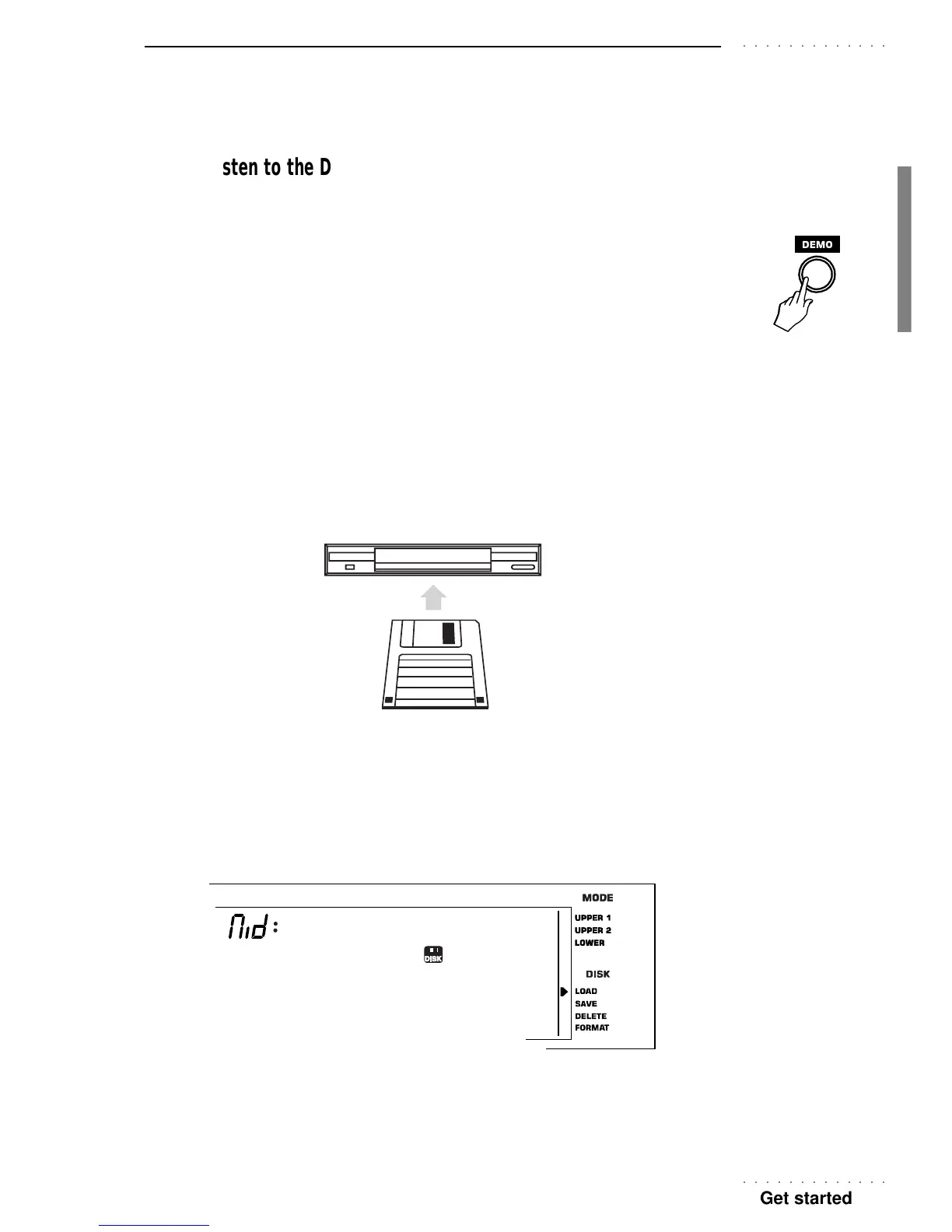 The DISK icon illuminates and the arrowhead to the right of the display points to the LOAD function in the