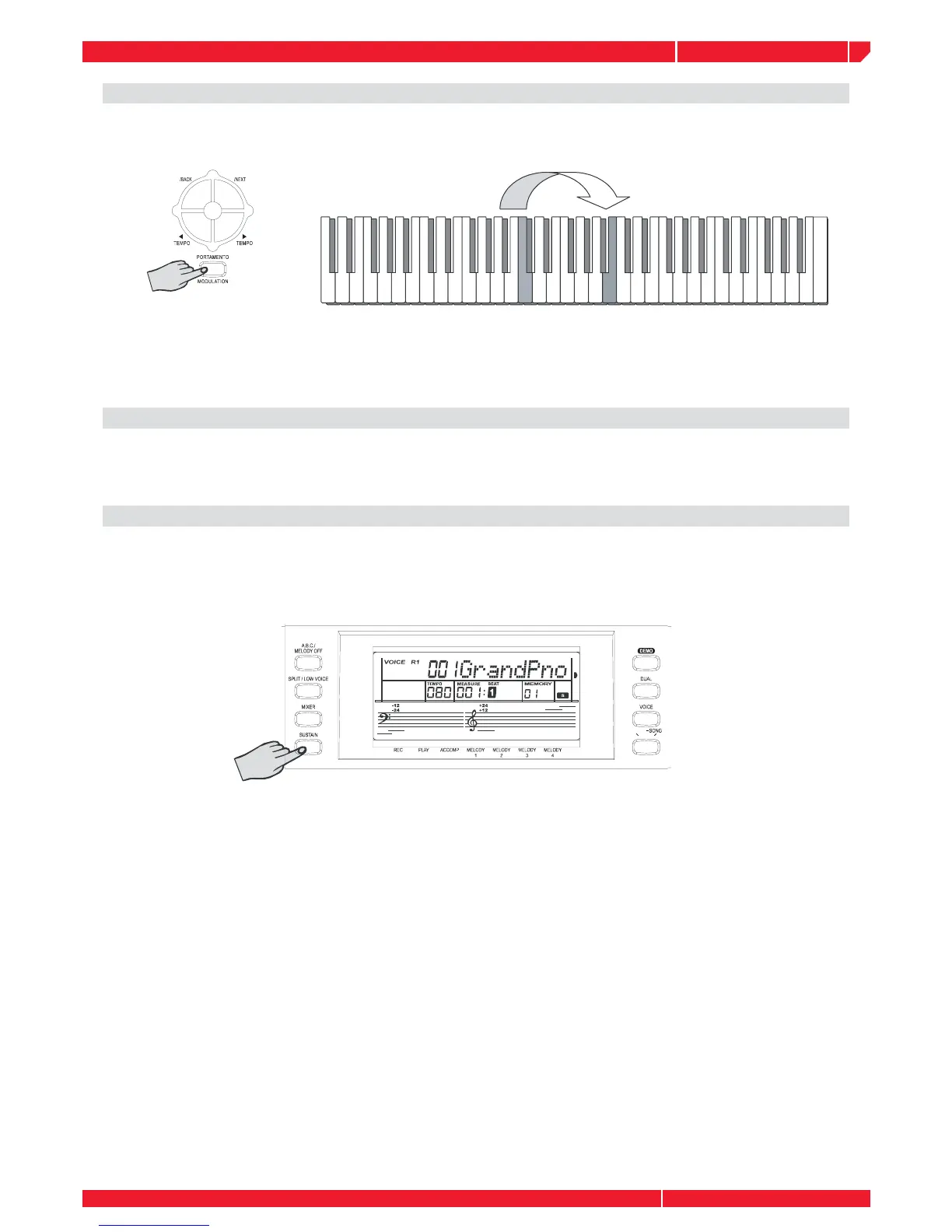 To have portamento effect,press and hold [PORTAMENTO] button and play the keyboard.