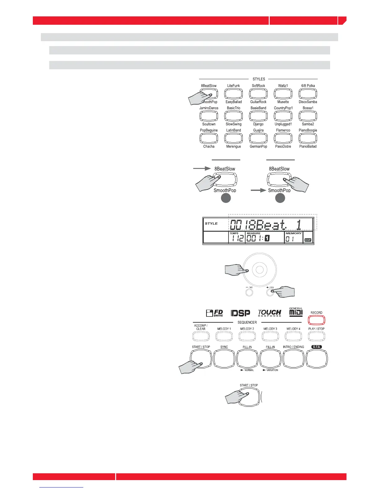 Once you have recalled any STYLE by press-