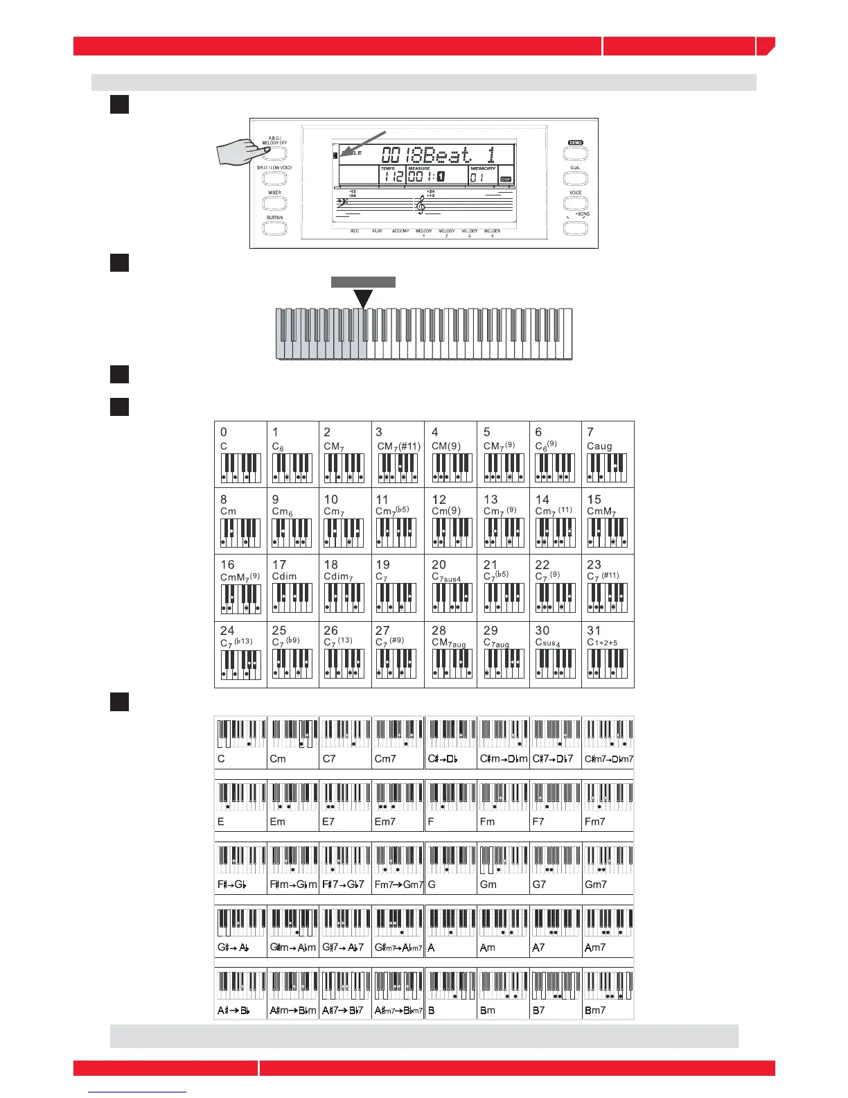 You can change the chords of the accompaniment by playing keys on the auto accompaniment