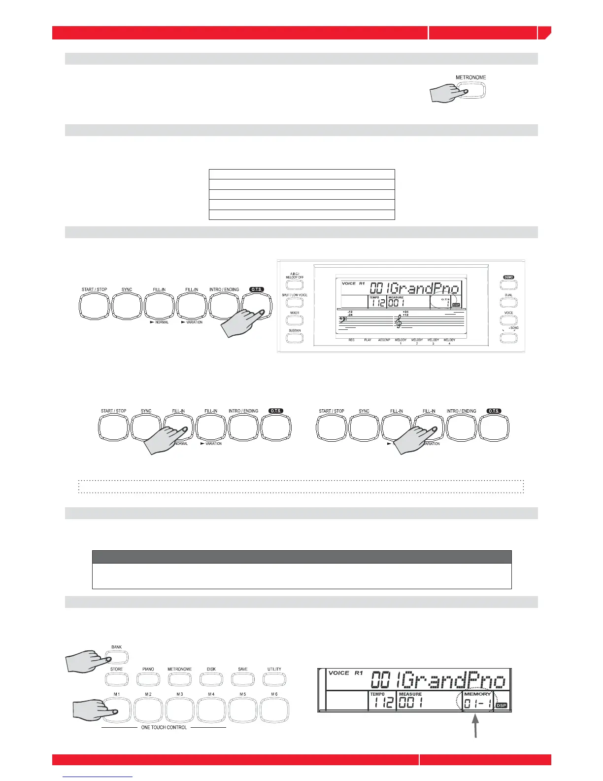 the style is playing, press [O.T.S.] to turn on the O.T.S. mode. It will insert a “Fill in” automatically.