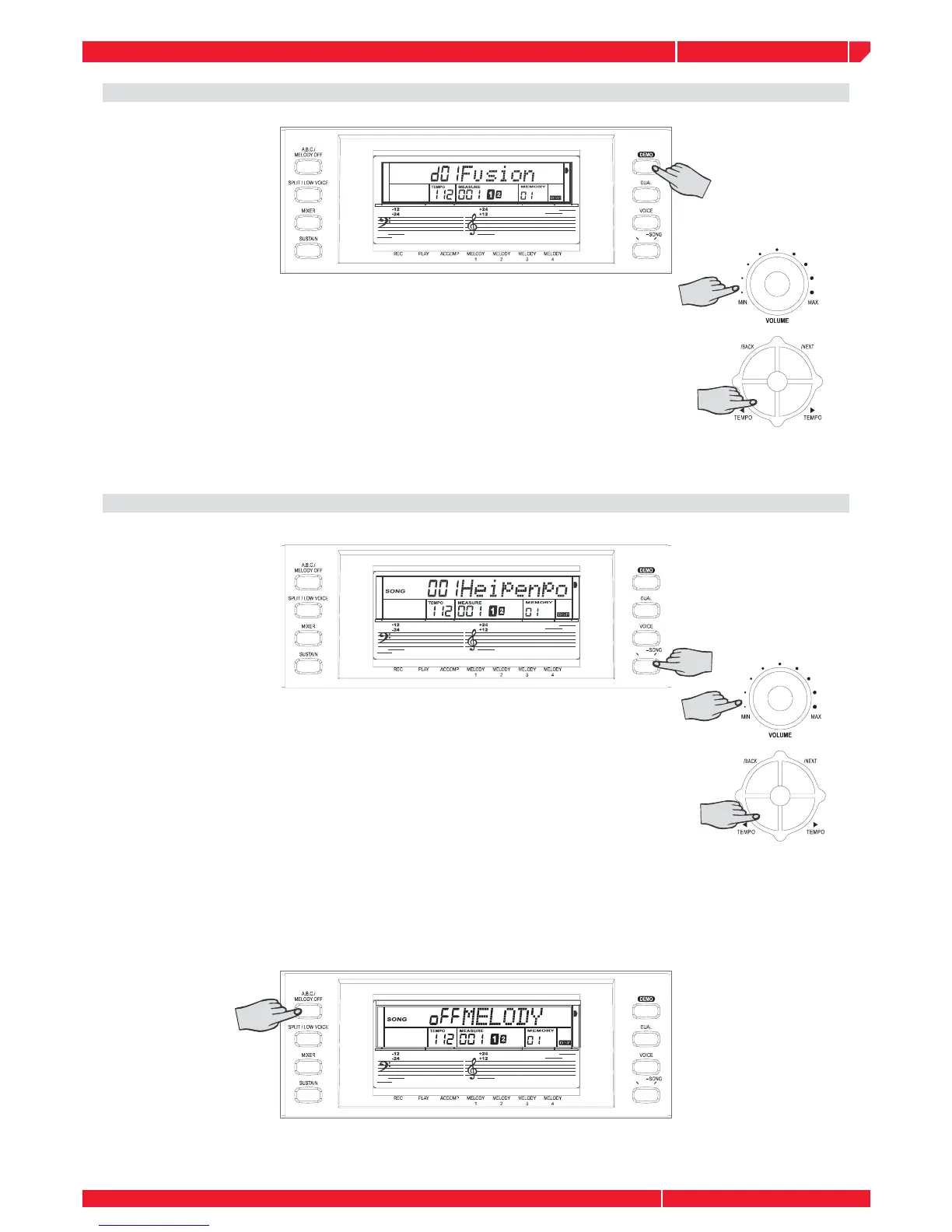 Press the TEMPO+/TEMPO- buttons to adjust the tempo of the DEMO.
