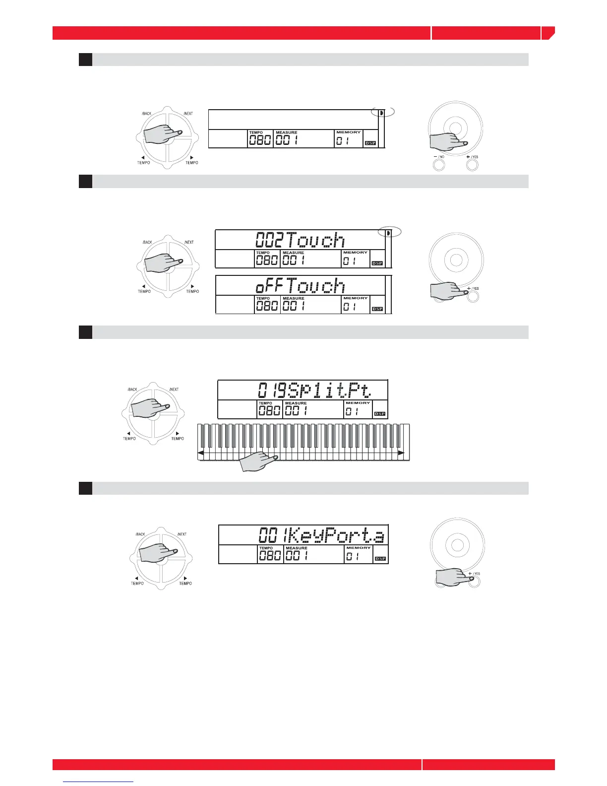 Press the NEXT button to select and adjust the keyboard SPLIT POINT with the control you