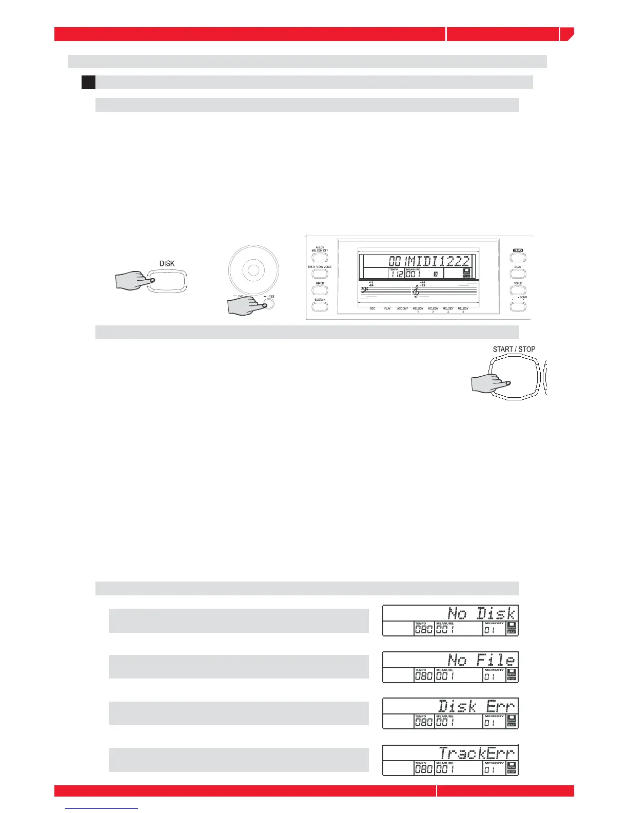 the LCD display. Only the names which extension are [.MID] in the disk will be displayed