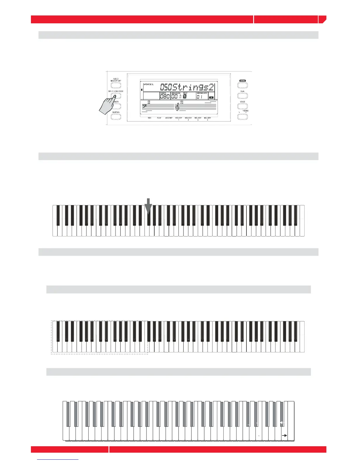 number. The default lower voice number is No. 50: Strings2. Press the button again to disable