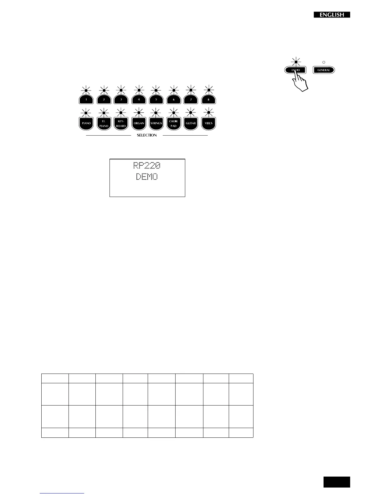 The buttons of the lower row recall single Preset recordings: piano, organ,