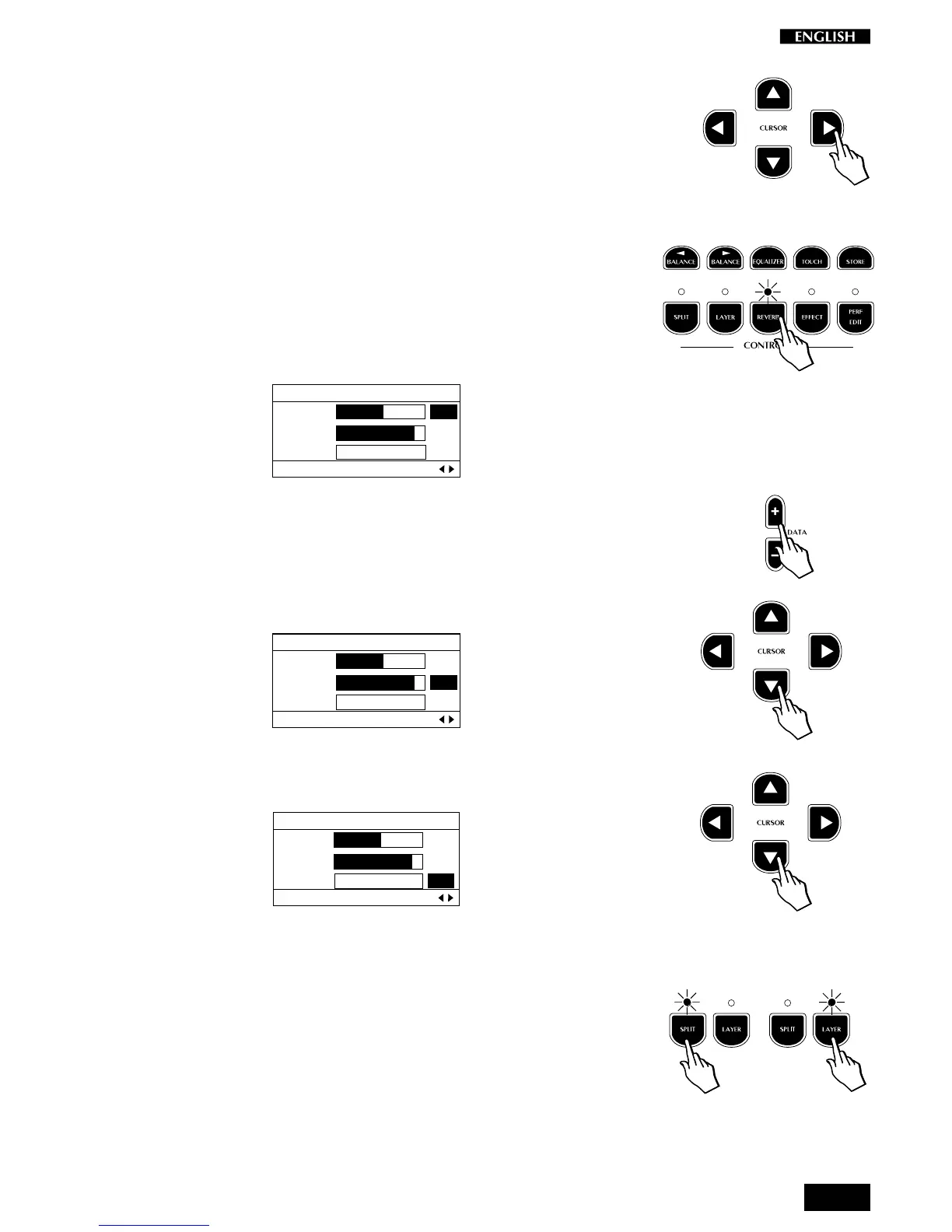 of reverb applied to a section (Single, Split or Layer) of the current Preset.