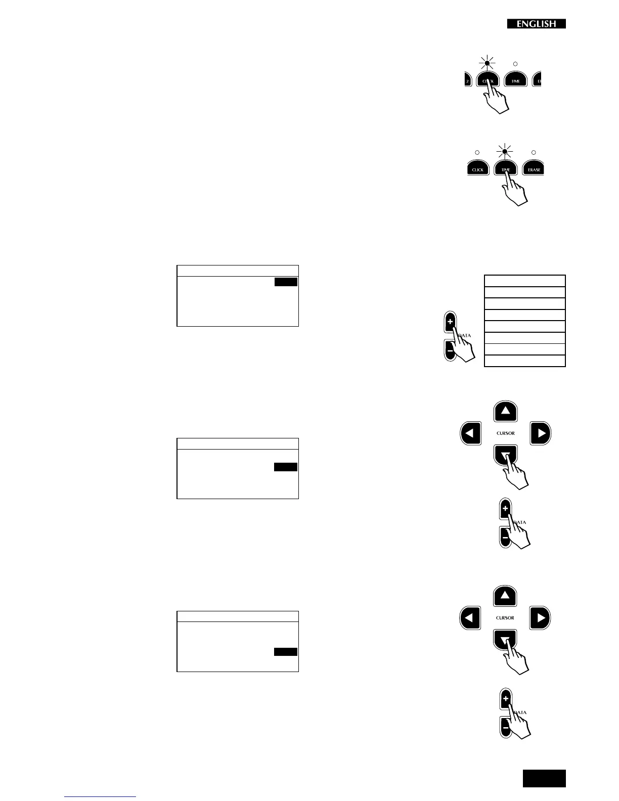 Press the Cursor Down button to select the Click volume parameter if you