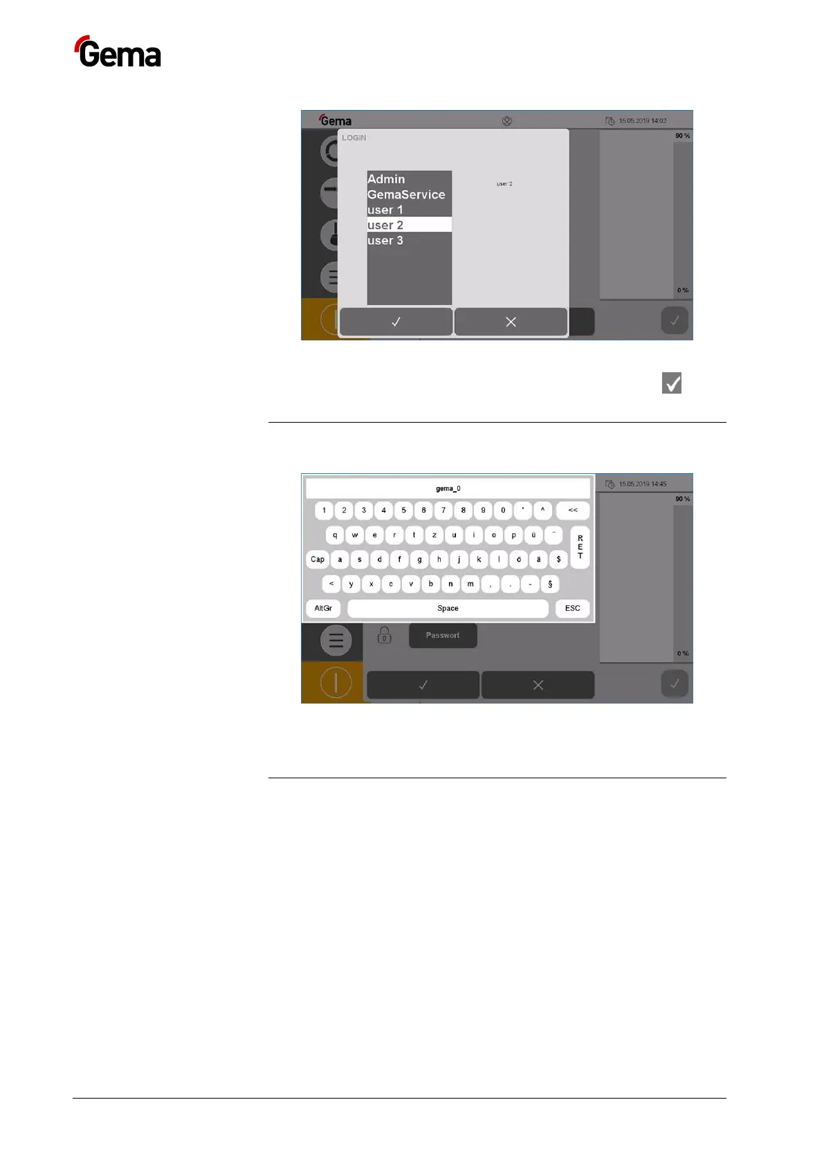 3. Select the desired user profile and confirm by pressing the key