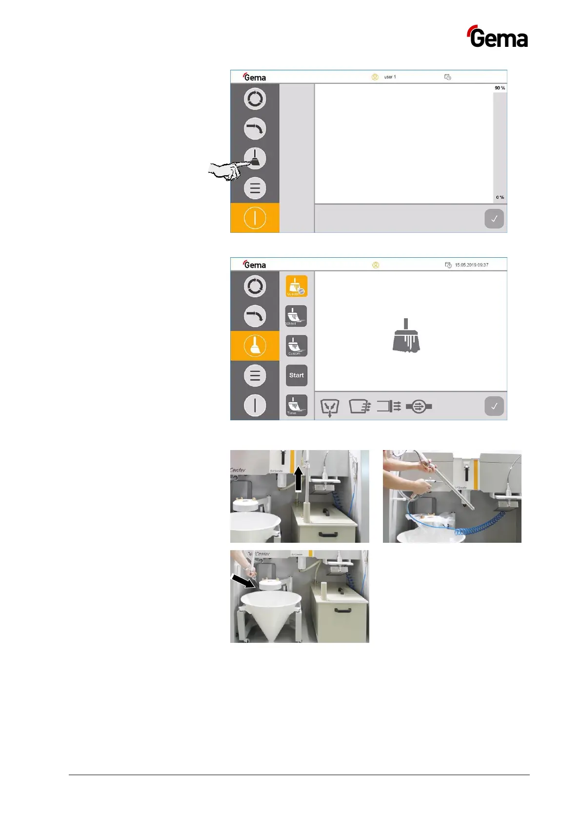 9. Ensure that the recovery hose is connected to the powder hopper