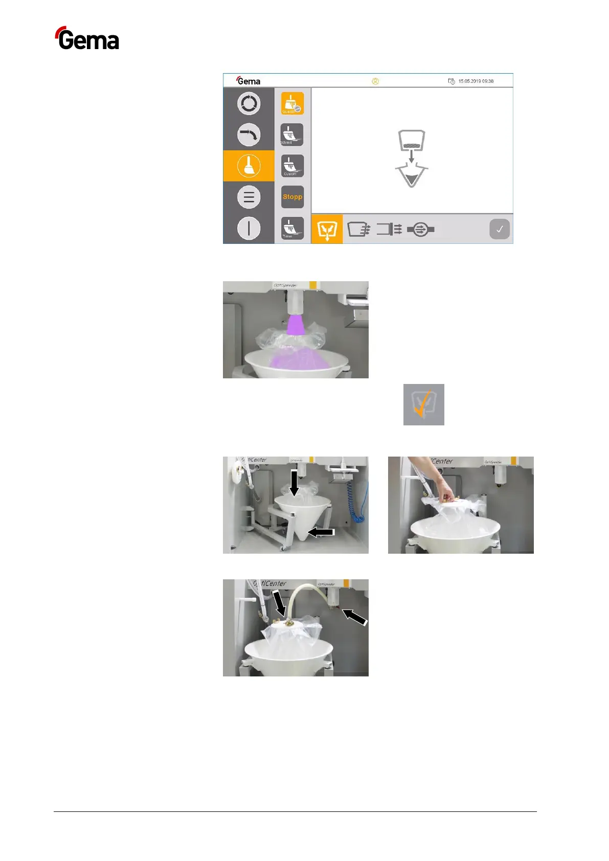15. The pinch valve below the OptiSpeeder opens and the powder in the