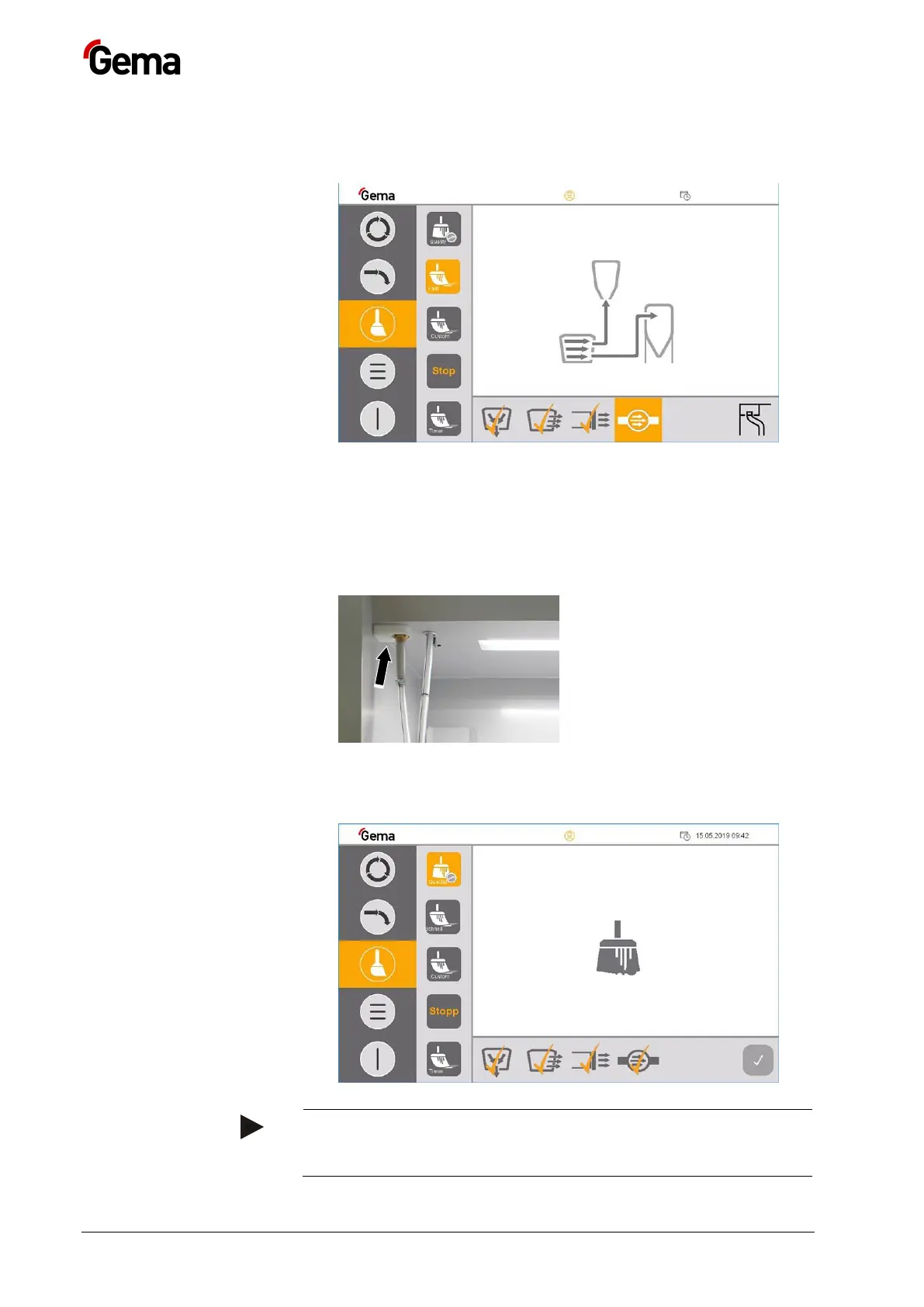 28. The booth can now be cleaned: Activate the corresponding